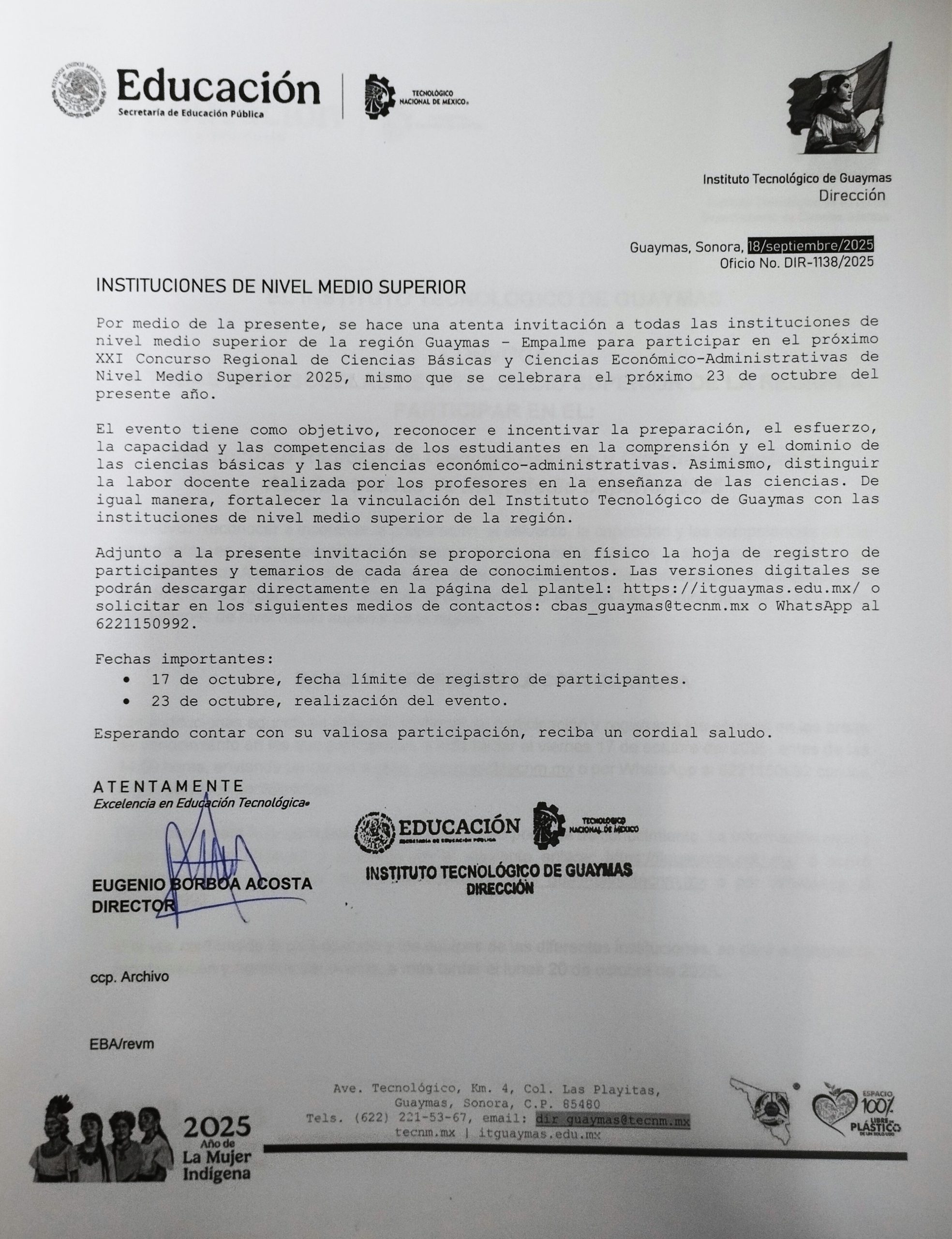 El director del instituto, Dr. Eugenio Borboa Acosta, compartió un mensaje de motivación y compromiso con la comunidad estudiantil: “Cada inicio de ciclo representa una oportunidad para crecer, aprender y transformar. En el Tecnológico de Guaymas estamos comprometidos con brindar una educación de calidad, formar líderes con visión global y fortalecer el vínculo con nuestra comunidad. A los nuevos estudiantes, les damos la más cordial bienvenida, y a quienes continúan, los invitamos a seguir construyendo su futuro con pasión y responsabilidad.”