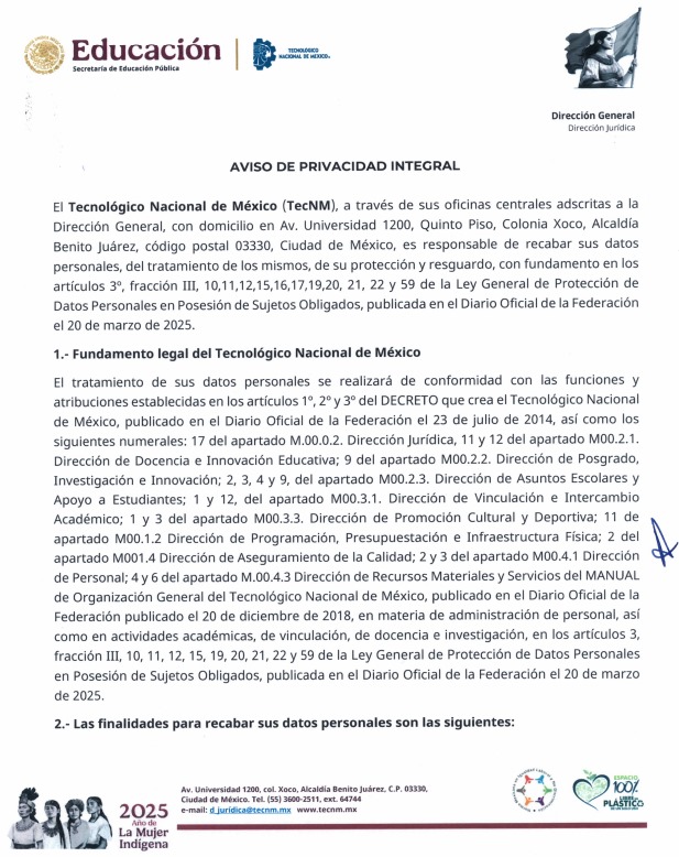 Se extiende un agradecimiento a la Dirección Jurídica del TecNM, encabezada por el Lic. Andrés Pérez Méndez y su equipo de trabajo, por la invitación y el compromiso demostrado en el desarrollo de este importante taller.