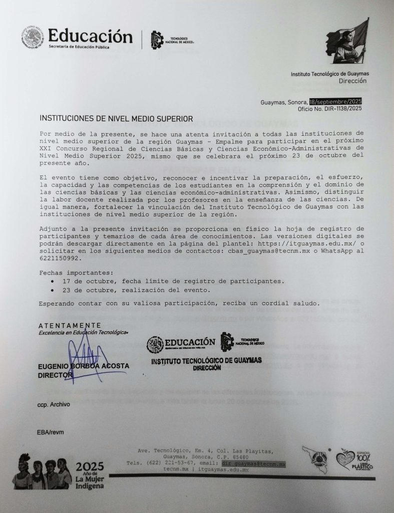 También enfatizó que se continúa en constante preparación de los docentes y generando al mismo tiempo el conocimiento necesario para que impacte positivamente en el futuro de los estudiantes, así como de Guaymas, Sonora y México. Fundado dentro del Programa Nacional Tecnológico, desde 1984 ha formado profesionistas para apoyar al sector productivo de la región.