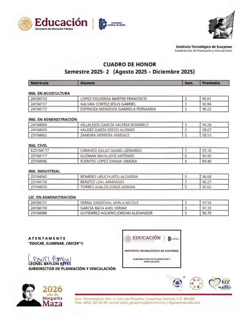 Desde el TecNM campus Guaymas extendemos nuestra felicitación a este grupo académico por su profesionalismo y vocación, atributos que hoy trascienden fronteras y consolidan al ITG como un referente de excelencia en la educación superior tecnológica.